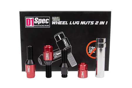 Śruby do kół D1Spec Heptagon 2w1 Stal M14x1,5 30mm Stożek Czerwone